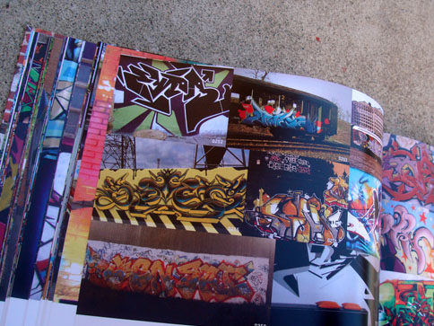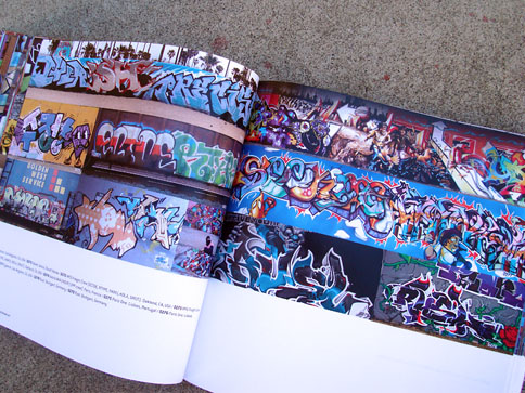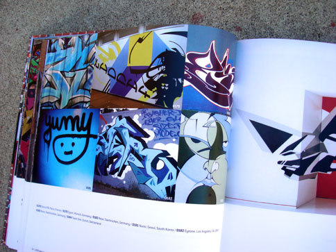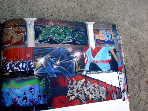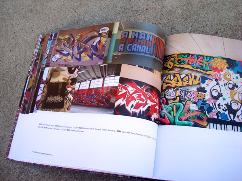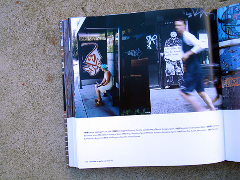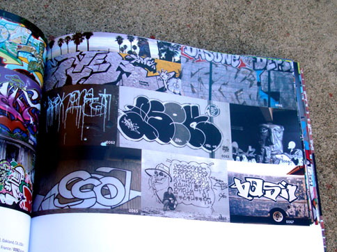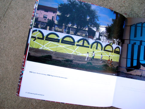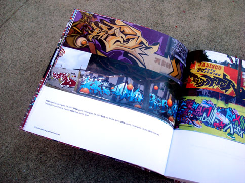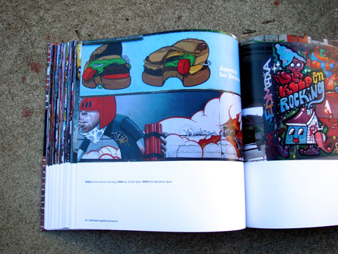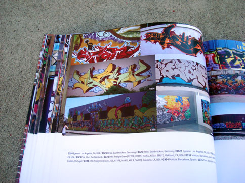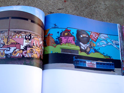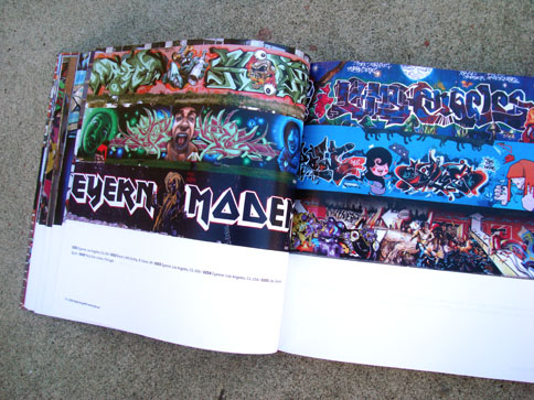 This nifty book combines what I miss from many now-defunct graffiti mags and the top-notch production value expected from books on the subject. In 1000 Ideas For Graffiti and Street Art, author Cristian Campos presents an extensive selection of graffiti and related forms of expressions. Top notch European writers such as Shok, Toast, Mr. Wany, and Reso are well represented in the book; and from Los Angeles, a nice compilation of work by Seeking Heaven (and yours truly) makes good on the subtitle "Murals, Tags, and More from Artists Around the World." Cache, Yem, Skypage, Gorg, and a few more of the homies have cameos as well! (My only gripe with the book is that the credits got fudged a bit -they credited me for the flicks but not err'one up on the walls... I apologize profusely.)